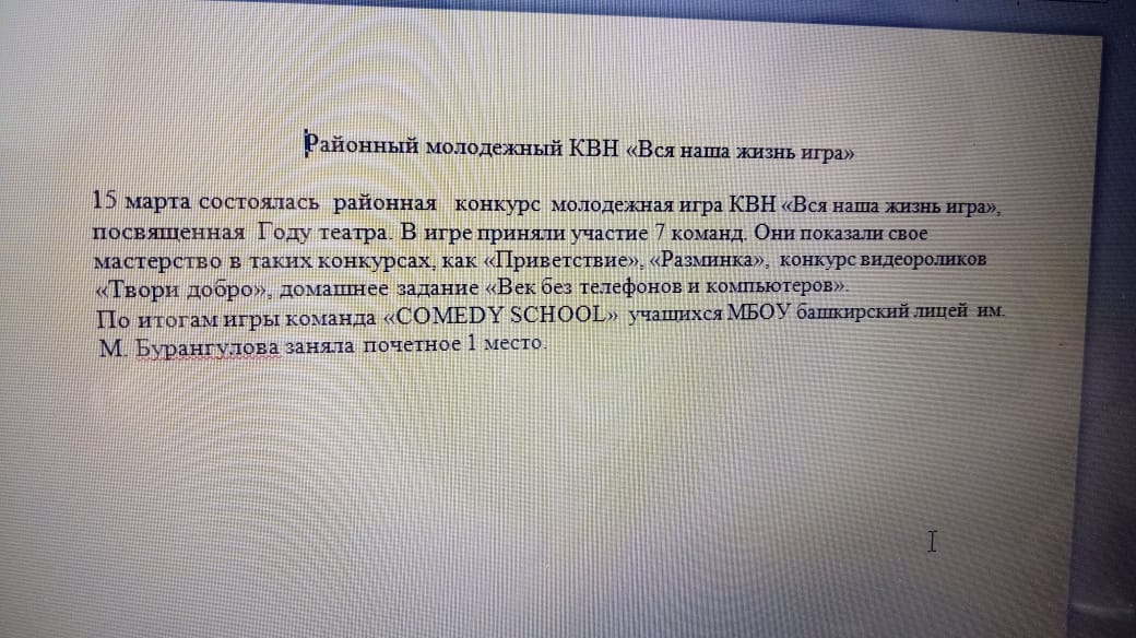 15 марта состоялась районная молодежная игра КВН "Вся наша жизнь — игра", посвященная Году театра.