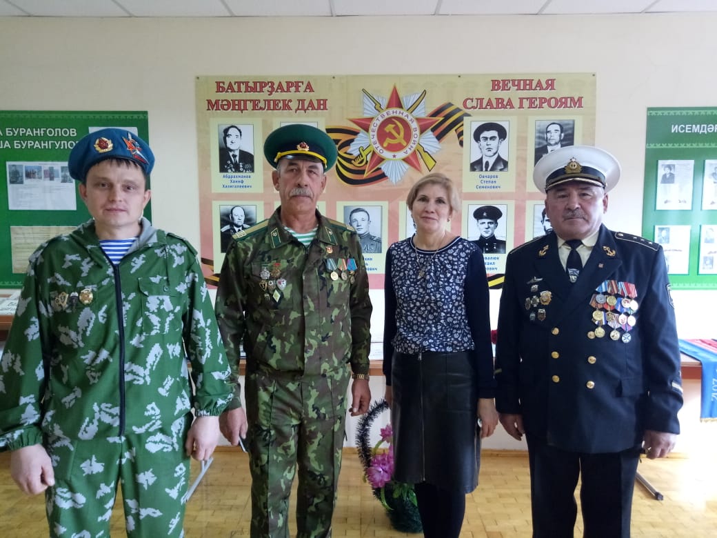 30 сентября МБОУ башкирский лицей им. М. Бурангулова посетили почётные гости: Ягудин А.Ф., Член Совета ветеранов пограничных войск; Ганеев О.Н., Член общественной организации ветеранов "Боевое братство" ; Курочко В.И., Член Совета ветеранов военно-воздушных войск. Они выступили перед учащимися с напутственными словами, поделились боевым и богатым жизненным опытом. Октябрь Назмутдинович от имени Председателя филиала Морского Собрания Башкортостана по Альшеевскому району, Капитана второго ранга Антоненко В.М. подарил школьному музею книгу "Моряки Республики Башкортостан на службе Отечеству".