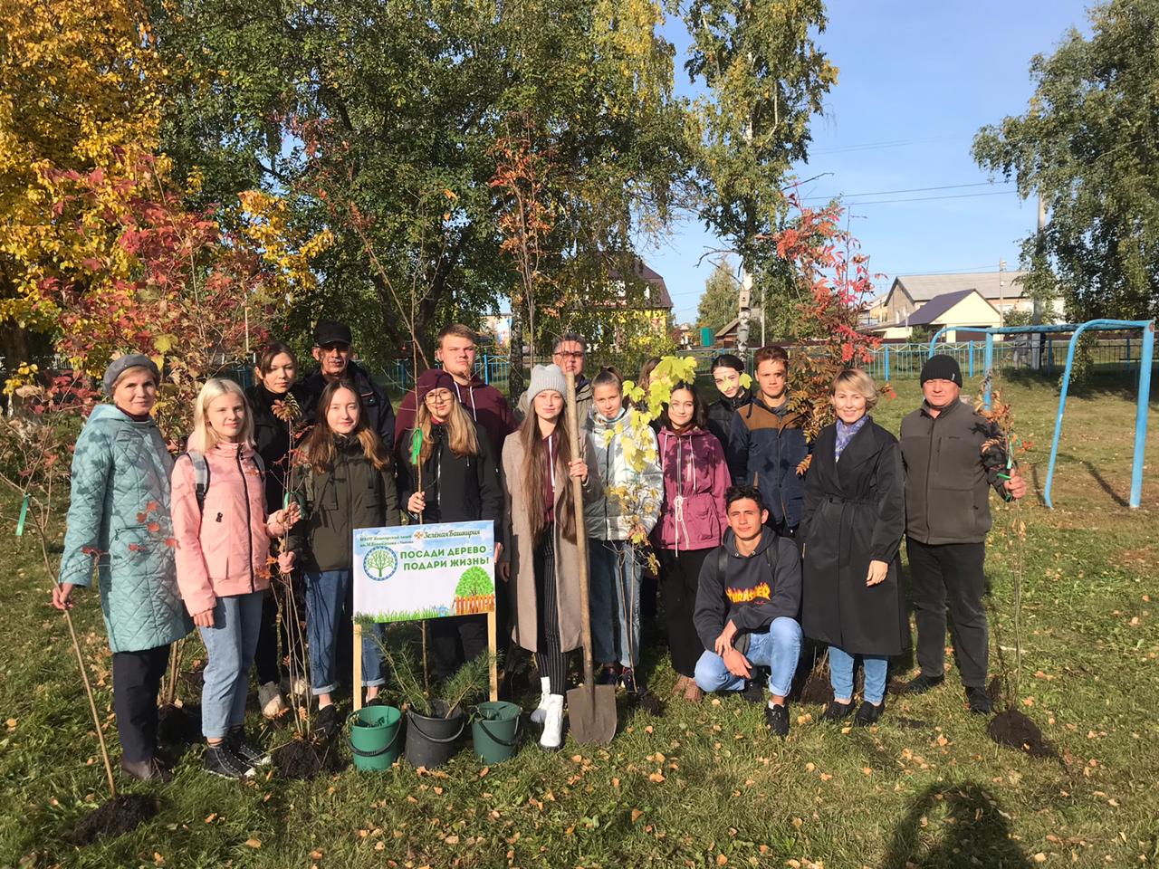Выпускники башкирского лицея им. М. Бурангулова с.Раевский приняли участие в Республиканской акции #ЗелёнаяБашкирия под слоганом "Посади дерево - подари жизнь!"
