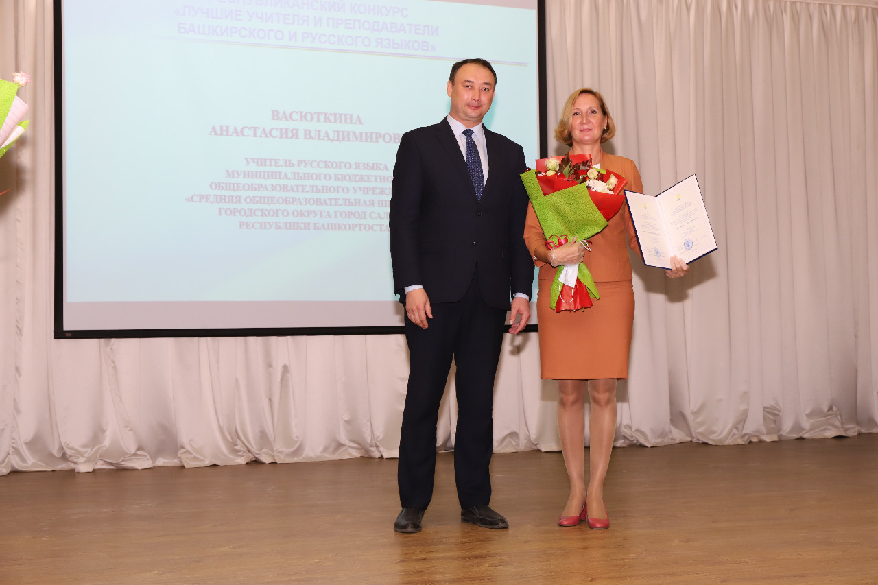 7 октября Министерство образования и науки Республики Башкортостан провело торжественное мероприятие, посвящённое чествованию победителей республиканского конкурса «Лучшие учителя и преподаватели башкирского и русского языков». Учитель русского языка и литературы МБОУ башкирский лицей имени М. Бурангулова с.Раевский Валиуллина Зульфия Рауфовна признана победителем конкурса «Лучшие учителя и преподаватели башкирского и русского языков», удостоена денежного поощрения Правительства Республики Башкортостан. Желаем крепкого здоровья и творческих успехов!